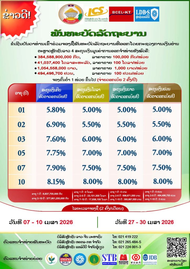 | ໂດລາ | USD CASH 1-20 | 22073.0 | 22179.0 | |